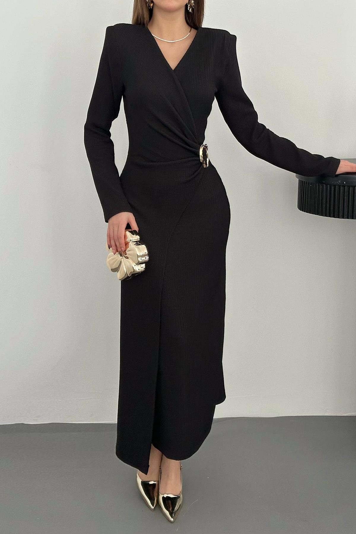 ELISA Büzgü Detaylı Tokalı Elbise
