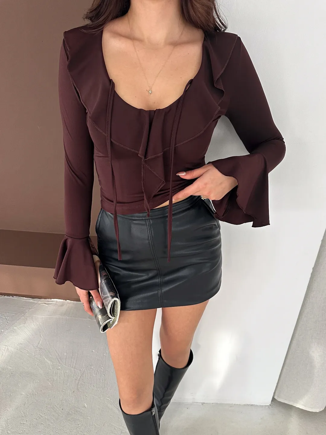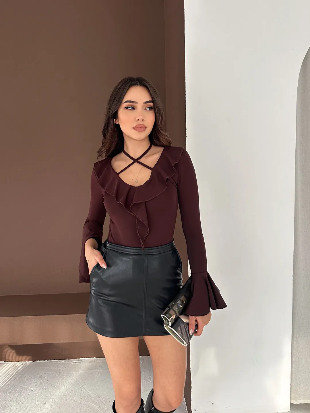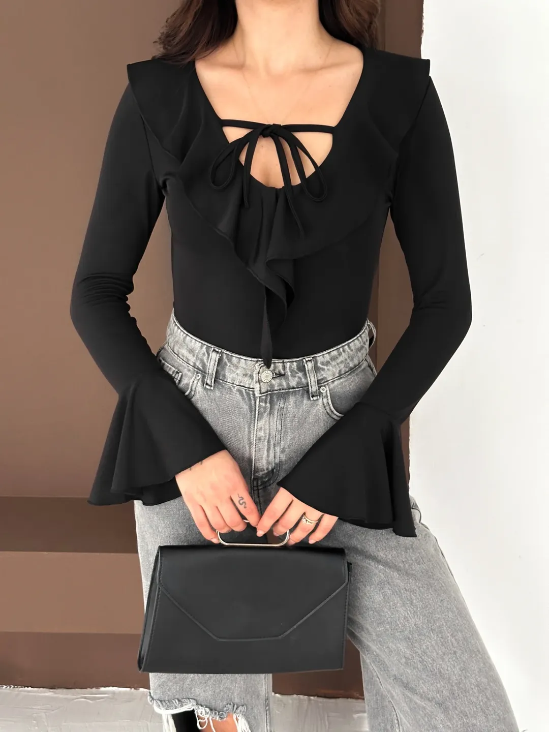 İspnayol Kol Fırfır Yakalı Bluz