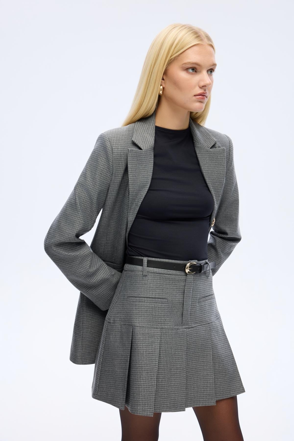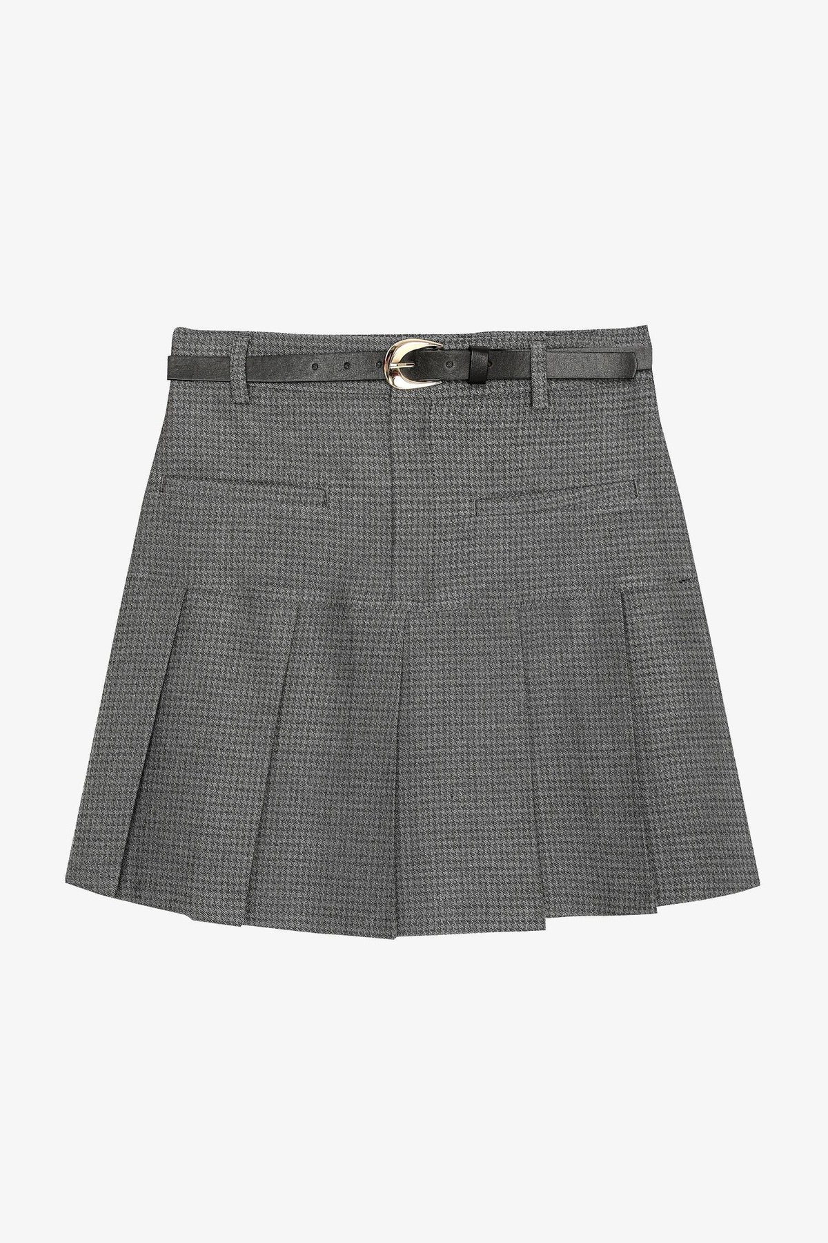 Quzu Kemer Detaylı Pileli Etek