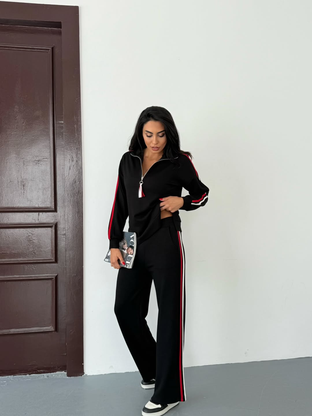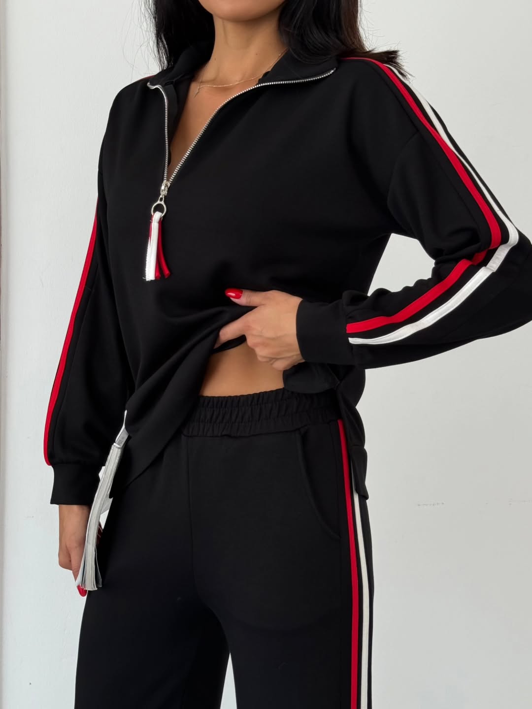 Yarım Fermuarlı Yan Şeritli Modal Kumaş Eşofman Takımı